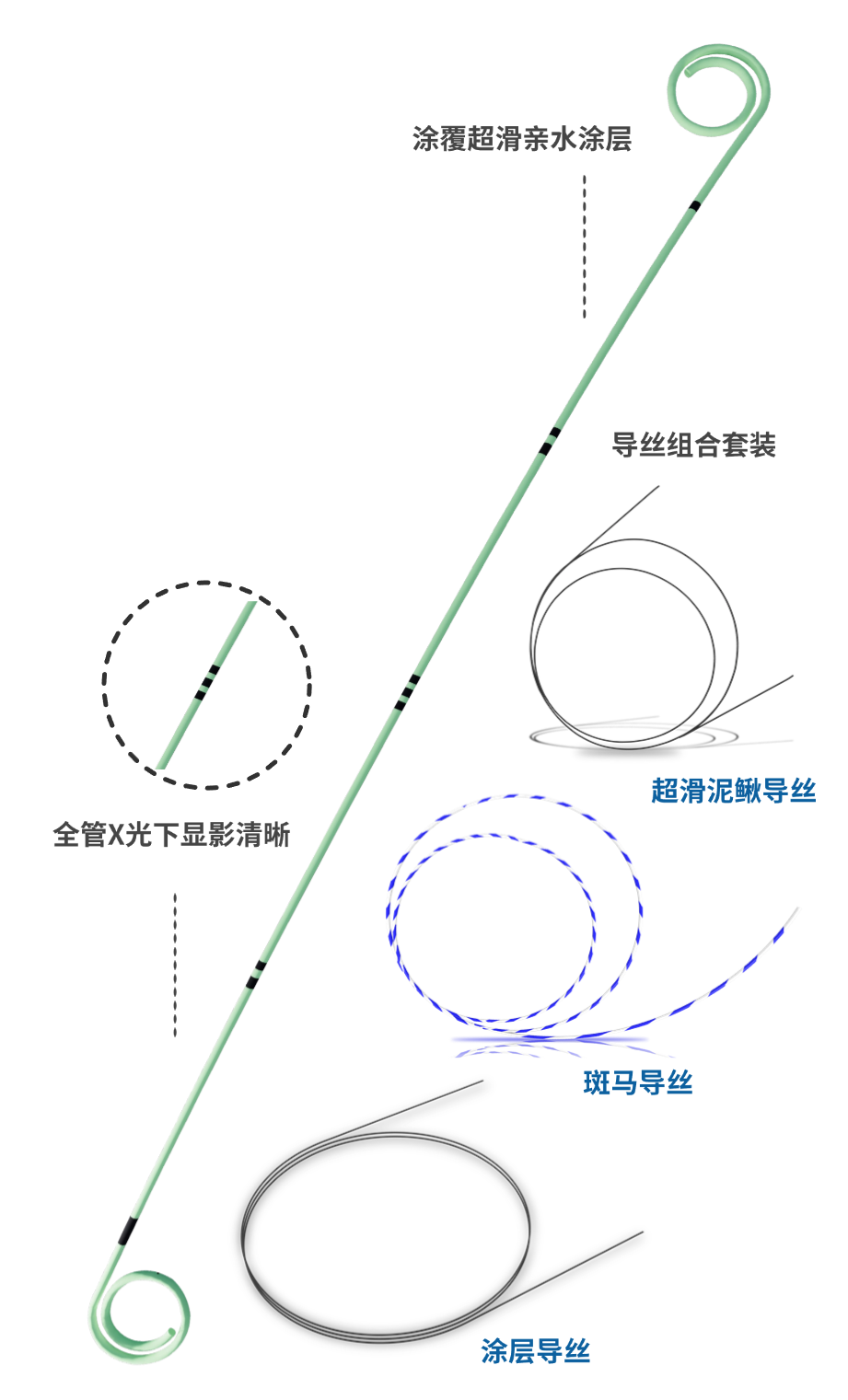 可搭配斑馬導(dǎo)絲、超滑泥鰍導(dǎo)絲、涂層導(dǎo)絲,多配件及規(guī)格可供選擇,滿足臨床不同需求。