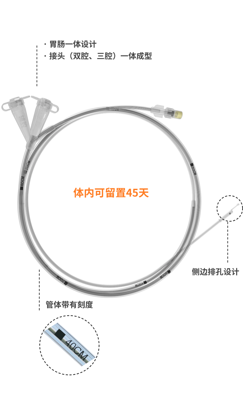 胃腸一體設(shè)計:胃部減壓和腸內(nèi)給養(yǎng)可同時進行;